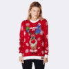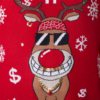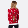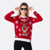 Deze foute dames kersttrui zal zeker indruk maken. Niet alleen om de geinige tekst: hij barst van de leuke details! Diamantjes op de tanden, een ketting van gouden pailletten met een rood belletje…en óók 2 belletjes op een andere plek. En dat niet alleen: er zitten ook nog eens 12 gekleurde LED lapjes in het gewei van Rudolph. Één ding is zeker: deze gaat opvallen op élke kerstborrel!