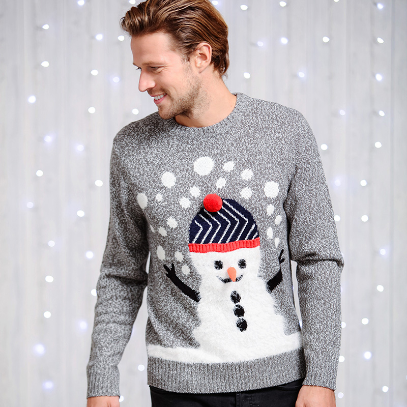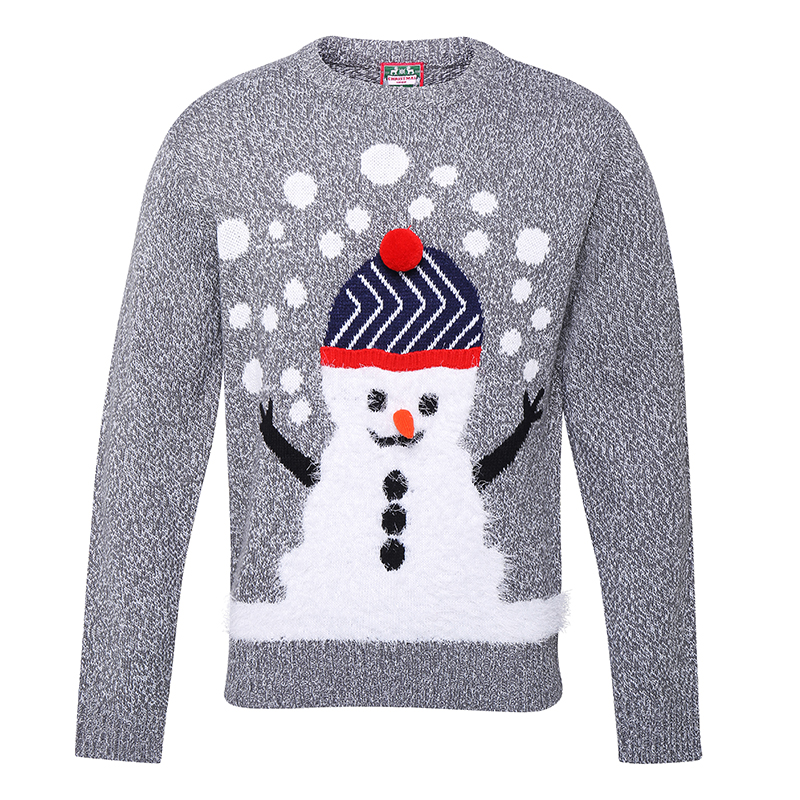 Deze geinige 3D Kersttrui met een sneeuwpop of sneeuwman is niet te missen met zijn uitstekende oranje wortel-neus en muts met echt 3D bolletje. De sneeuwpop is tegen een modieuze lichtgrijze achtergrond gezet en kwa maatvoering unisex te dragen.