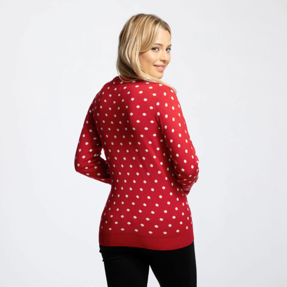 Pasvorm: Ons model is 170cm en draagt maat S. De kersttruien hebben een normale pasvorm, dus kies de maat die u normaliter draagt. Valt u tussen twee maten? Dan adviseren we de grotere maat te nemen!