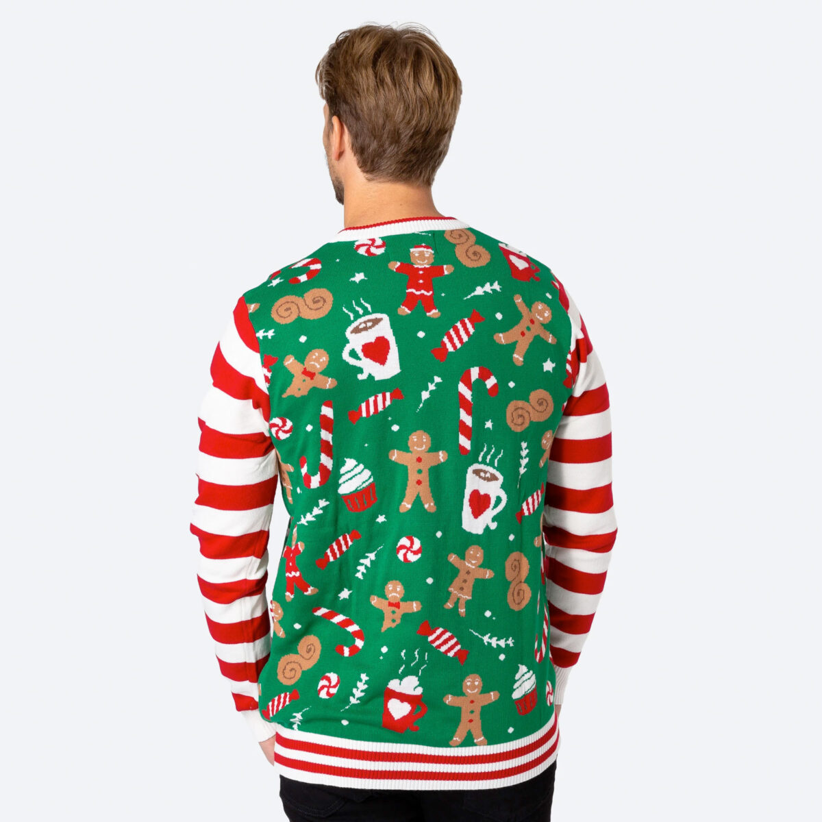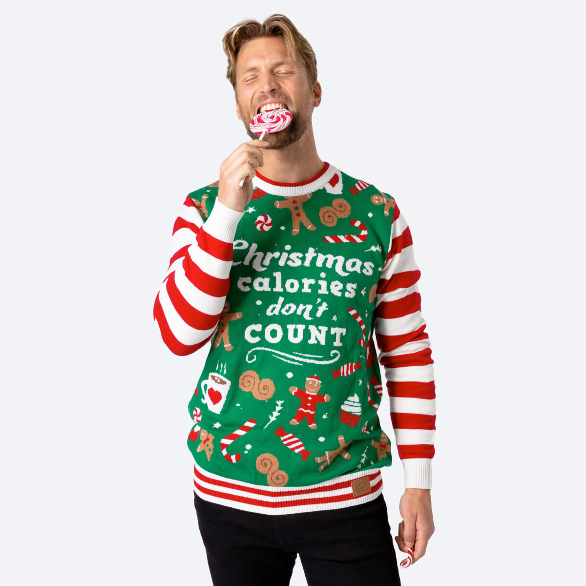 Met kerst hoef je je niet in te houden, want “Christmas Calories Don’t Count”! Ga dus gerust los tijdens het kerstdiner en snoep je een slag in de rondte. Na de kerst zien we wel weer verder, toch?! Deze geinige kersttrui met gestreepte armen en snoep-afbeeldingen heeft al een niet te missen design, maar is óók nog eens voorzien van LED verlichting!