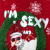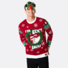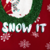 Met deze heren kersttrui laat je iedereen weten dat jíj ook heus wel weet dat je sexy bent! De geinig I’m Sexy and I Snow It kersttrui is voorzien van 12 gekleurde LED lampjes voor extra flash en heeft een ontwerp met superveel details! Zo isi de rode trui rondom voorzien van sneeuwkristallen, óók op de rug. De mouwen hebben groene noorse accenten en voorop de trui vindt je een kerstkrans met sneeuwpop. Deze heeft een muts met glinsterende pailletten en de krans zelf is ook in een glinsterend materiaal uitgevoerd.