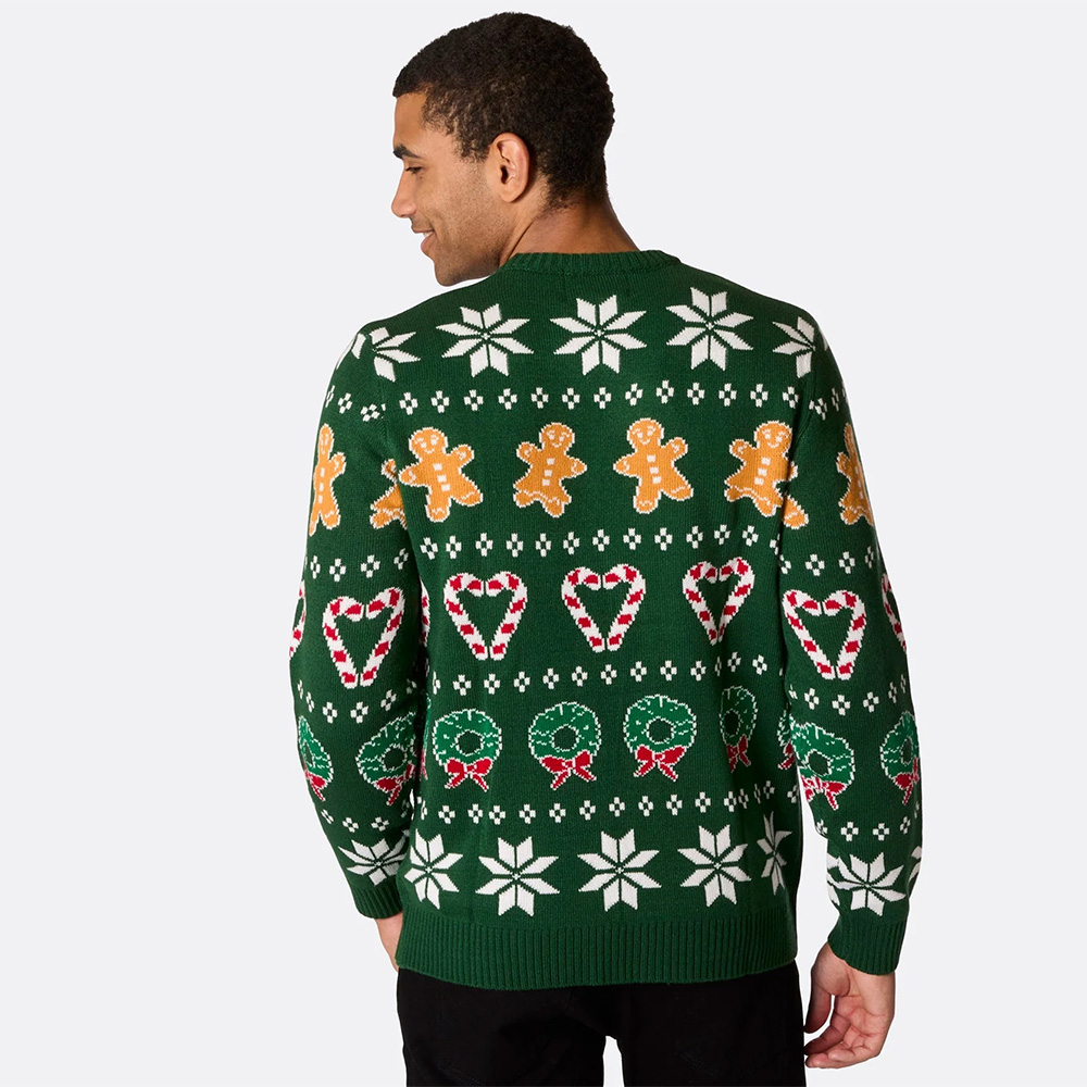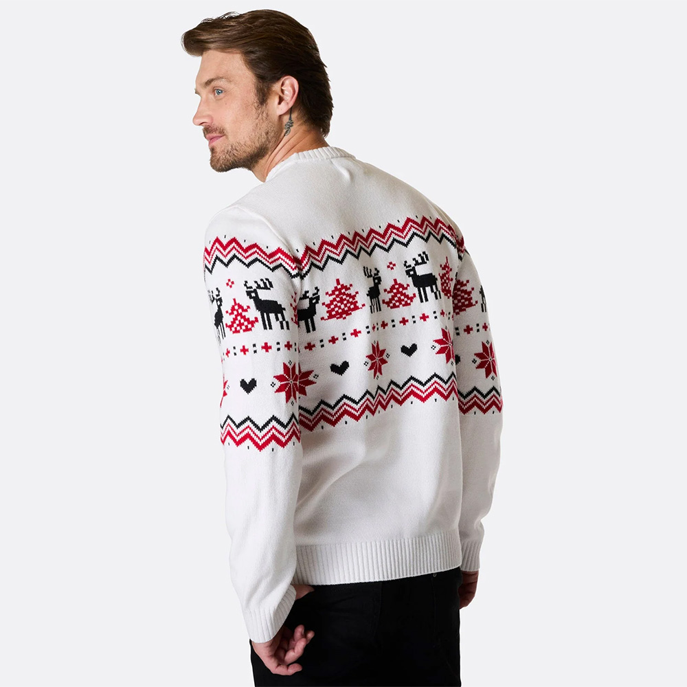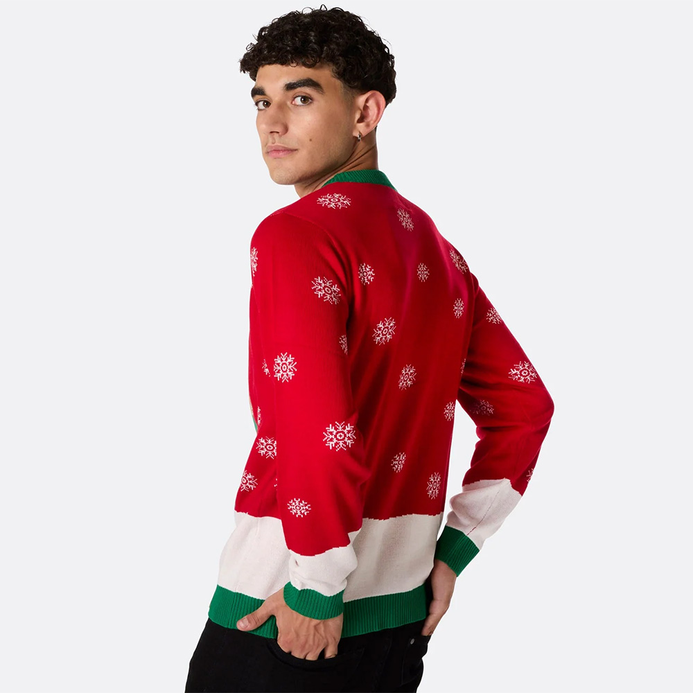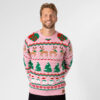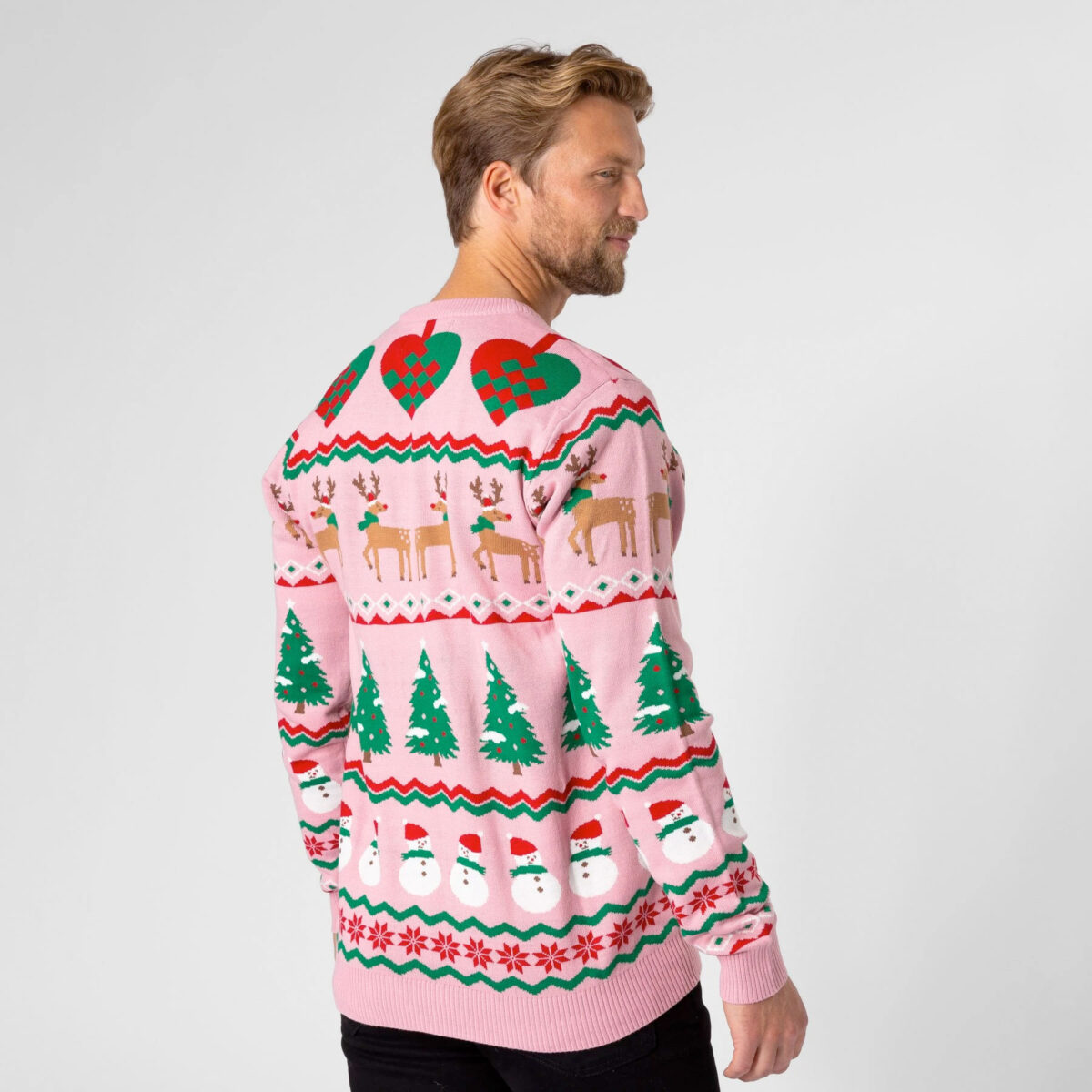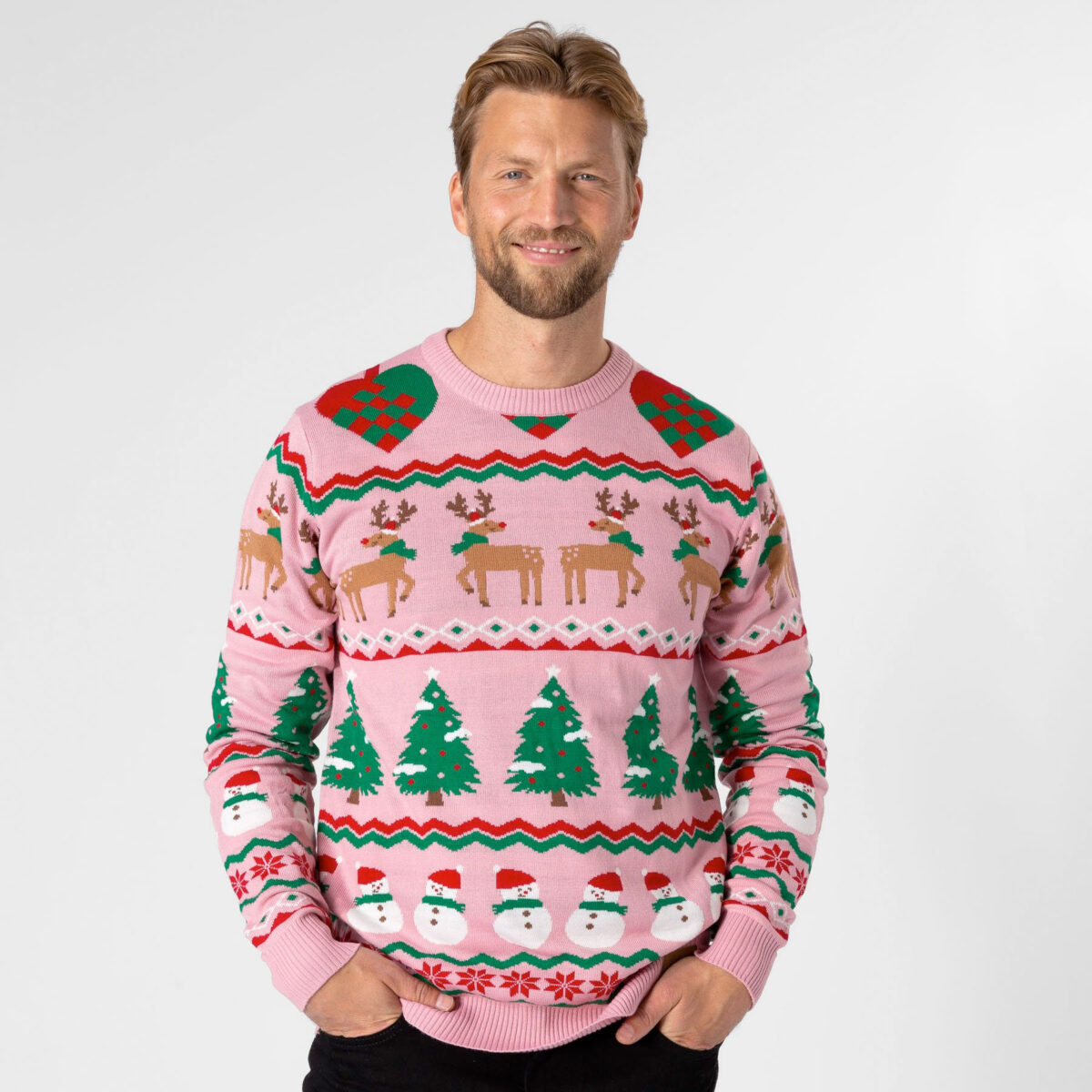 Deze heren kersttrui heeft volgens ons precies de juiste hoeveelheid foutheid om leuk te zijn! De trui is gedecoreerd met verschillende kerstpatronen, zoals herten, kerstbomen en sneeuwpoppen. De basis van de trui is roze. Deze trui is ook verkrijgbaar voor dames!