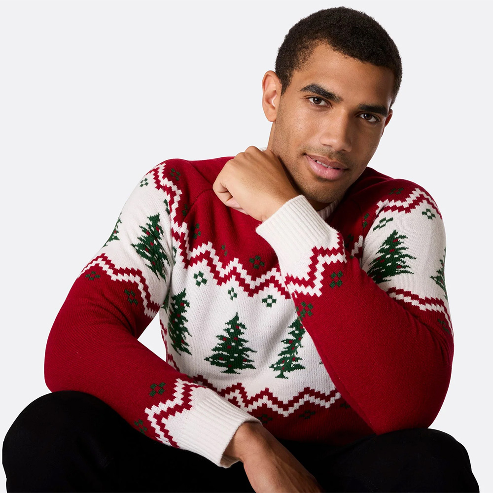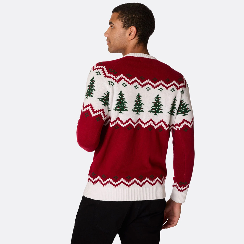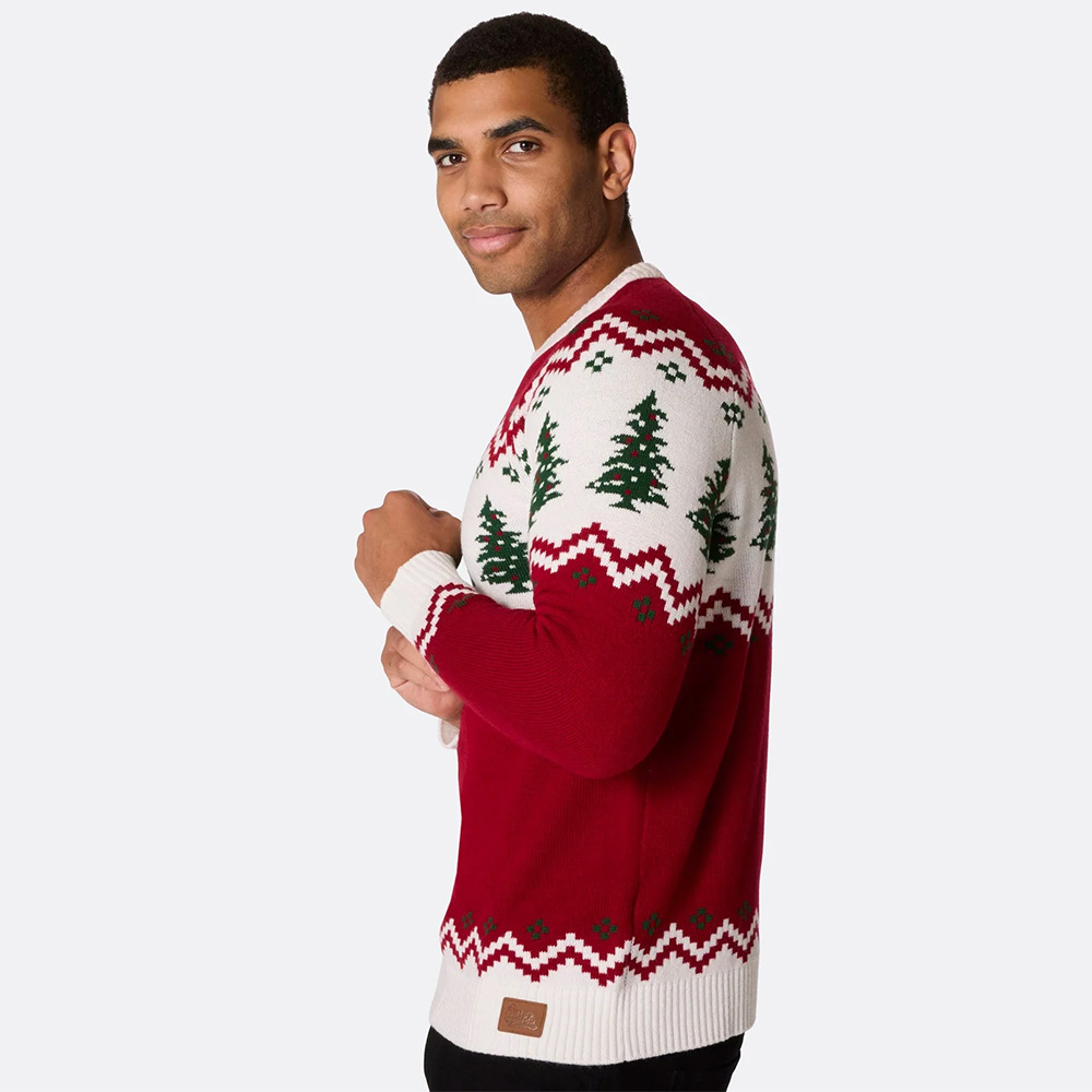 Deze heerlijke vintage kersttrui met nostalgisch Kerstboom design komt u sfeervol voor de dag op elke kerstpartij. De klassieke rood met witte kleurstelling met groene kerstbomen geeft de trui een tijdloze uitstraling.